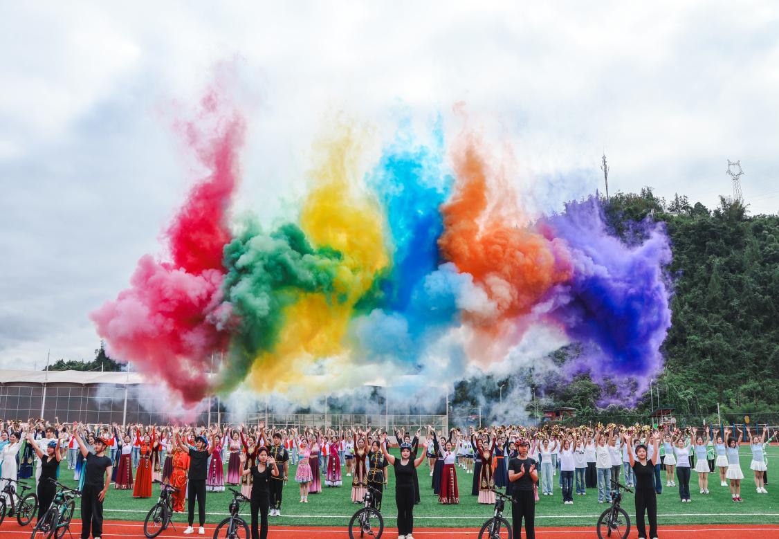 表演落幕,运动员代表与裁判员代表先后上台宣誓,承诺将以公平、拼搏的态度参与赛事。最后,党委书记覃红斌宣布:“湖北恩施学院2025 年秋季运动会正式开幕!”彩烟直冲云霄,全校师生共同见证了这一激动人心的时刻,期待未来三天的竞技赛事中,各学院学子能展现一系列精彩竞技和团队协作的精彩瞬间。