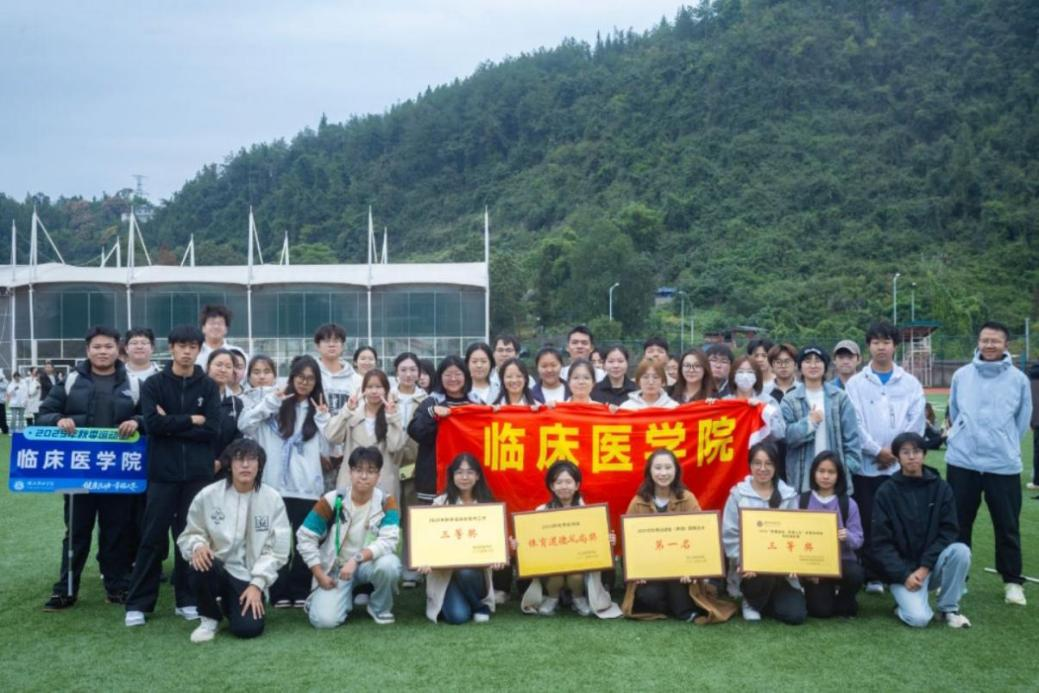 学校领导为获奖团队一一颁奖。临床医学院荣获了甲组团体总分的第一名,并且在体育道德风尚、运动会宣传工作以及啦啦操比赛等多个方面取得了优异的成绩。当奖牌与证书递到获奖代表手中时,现场响起阵阵掌声,这掌声是对获奖者的祝贺,更是对所有参与者的致敬——因为每一位在赛场上拼搏过的师生,都是运动精神的践行者。