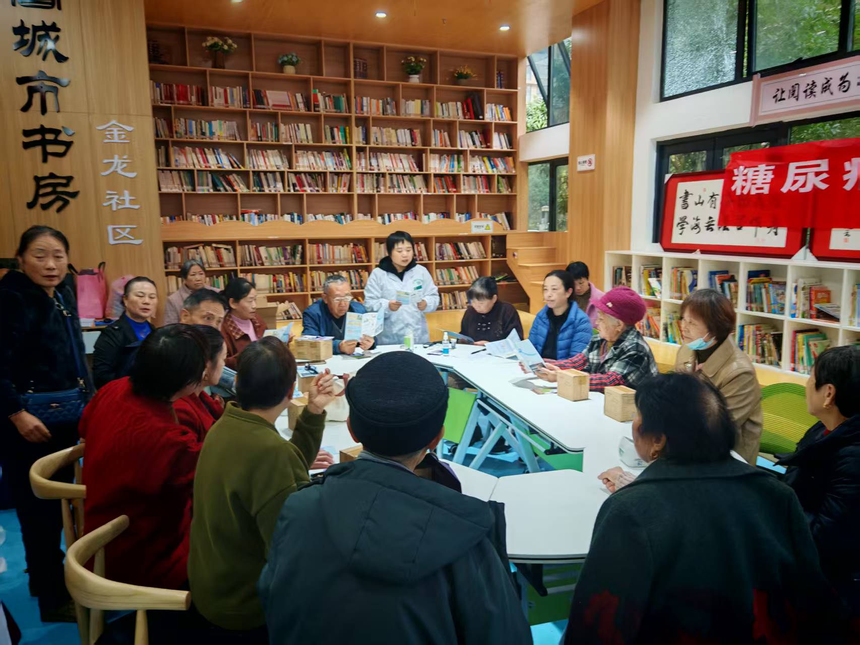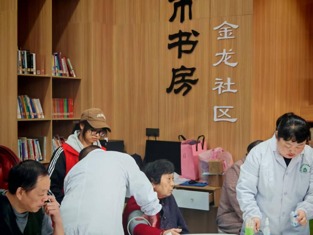 活动当日,志愿者们提前抵达金龙社区活动现场,有条不紊地完成场地布置、物资清点与流程核对,为活动开展筑牢基础。上午八点,活动正式启幕,首项环节便是面向社区中老年居民的健康知识讲座。志愿者紧扣老年群体高发的高血压、糖尿病等慢性病症,以通俗晓畅的语言拆解疾病预防要点、饮食调理诀窍与日常运动指南,现场演示血压、血糖的规范测量方法;面对居民提出的用药困惑与健康管理难题,志愿者逐一细致解答,并发放健康知识手册,助力老年人深化自我健康管理认知。