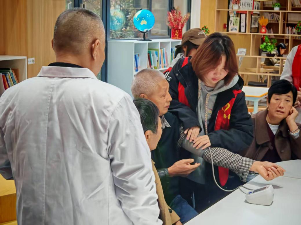 医学健康宣讲落幕,志愿服务转入实操环节。在医疗协助服务区,志愿者与社区医院工作人员默契配合,为居民提供血糖、血压检测服务。他们主动引导老人有序就座,轻整衣袖、细作消毒,精准完成血糖采血与血压测量;同时认真记录每位老人的检测数据,对指标异常者及时提示就医,并结合个体情况给出个性化健康建议。细致入微的服务赢得居民广泛赞誉。