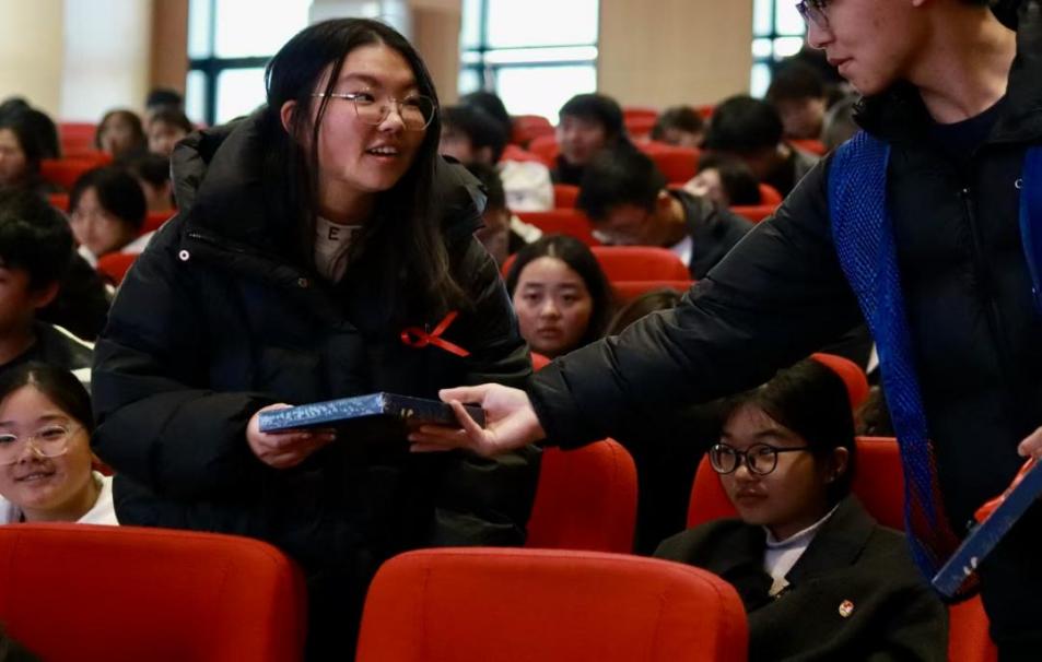 讲座在热烈而温馨的氛围中落下帷幕。主持人讲道,“讲座的结束,不应是关注的终点,而应是我们肩负责任、携手同行的新起点。让我们从今天起,将这份知识与关爱传递出去,让红丝带飘扬在每个人的心中。防艾教育不止于一场活动,更应成为长期践行的校园行动。”引发每位同学的思考,最后同学们在工作人员的引导下有序签到且离场,红丝带在他们胸前轻轻摇曳,仿佛默默传递着一份关于爱与责任的承诺。