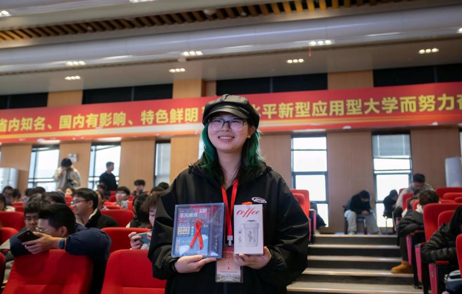 为了增强讲座的参与感,老师多次进行互动提问环节。同学们也热情满满,踊跃举手,争相回答。每位回答正确的同学都获得了一份精美的礼品,现场不时响起鼓励的掌声。这种寓教于乐的方式,不仅活跃了气氛,也让关键知识点深入人心。除理论讲解外,讲座特别设置了实用技能教学环节。工作人员为同学们发放安全套,老师细致讲解了安全套的正确使用方法,并强调这是预防性传播疾病的有效手段之一。讲解过程中,老师语气自然、态度科学,引导同学们以健康、负责任的态度看待性保护问题。现场同学认真观摩实物,有的在相互讨论,展现出了对自身与他人健康的高度重视。