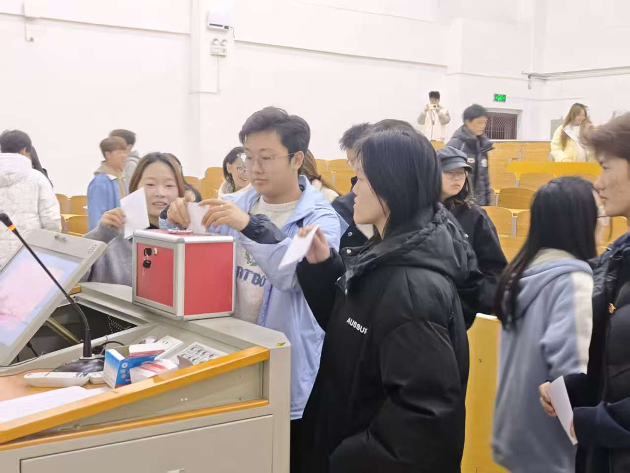 大会开幕前,团学指导老师赵阳捷围绕“会风会纪与团章遵循”作动员讲话,明确要求全体代表以高度的政治责任感参与选举,“要让每一张选票都体现青年的真实意愿,让当选者真正成为同学信任、能担重任的代表”。会议全程严格执行共青团组织选举工作条例,从选票发放、现场填票到集中计票,均由会务组与代表监督小组共同监督,确保流程公开透明、结果公平公正。
