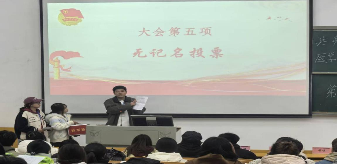 本网讯 2025年11月28日晚,共青团湖北恩施学院医学部临床医学院总支部委员会第二次团员代表大会在本校至善楼阶梯二教室完成全部议程,顺利落下帷幕。本次大会以“选优青年代表、凝聚青春合力”为核心,91名团员代表候选人提名人员全程参与,通过规范严谨的无记名投票,最终选举产生76名新一届团员代表,为学院共青团工作注入了新鲜的力量。