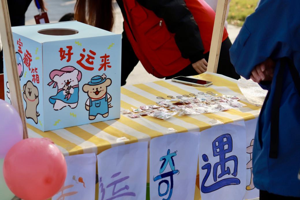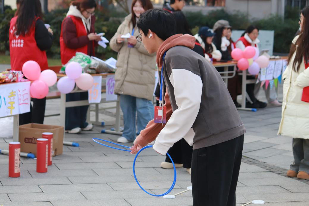 本次游园活动精心设置了趣味游戏、手工创作、知识挑战与爱心传递四大板块,十余项特色摊位错落排布,兼顾趣味性、专业性与互动性。“吹球过河”“幸运套圈圈”“投出小幸运”等经典游戏前,同学们踊跃参与,俯身轻吹时的专注、抬手投掷时的期待、成功中奖时的欢呼,将冬日的校园装点得格外热闹。