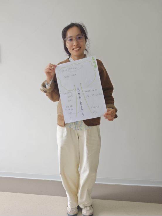 培训前,参训教师系统自学BOPPPS教学模式核心框架与课程设计流程,并提前准备10分钟教学片断。培训核心环节为BOPPPS微格教学演练:每位教师依次进行10分钟模拟授课,其余教师扮演学生参与互动,真实模拟课堂教学情境。演练结束后,“学生”首先从学习体验出发,对教学内容的呈现方式、互动设计、节奏控制等方面进行反馈;随后,杨倩老师引导全体教师围绕BOPPPS六大环节——导入(Bridge-in)、目标(Objective)、前测(Pre-assessment)、参与式学习(Participatory Learning)、后测(Post-assessment)、总结(Summary)——开展结构化复盘,重点关注各环节的逻辑衔接、学生参与机制、评估反馈设计等关键维度,并提出具体优化建议。