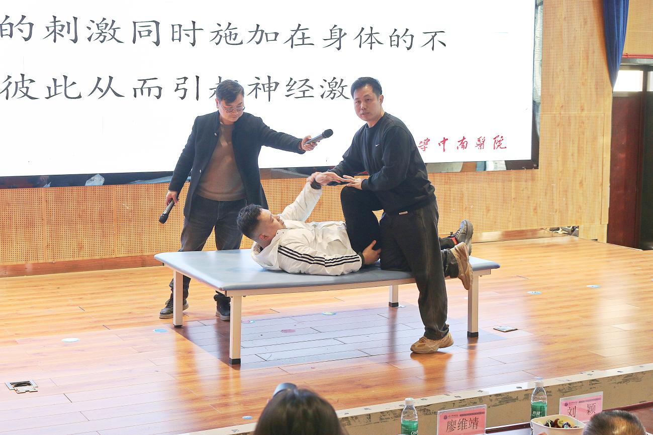 本次双至大讲堂,由湖北恩施学院组织人事处主办,湖北恩施学院医学部医学康养系承办,武汉大学中南医院神经康复科首席专家,德国柏林洪堡大学Charite医学院访问学者,主任医师、教授、博导廖维靖,武汉大学中南医院神经康复科副主任医师蔺俊斌,武汉大学中南医院神经康复科副主任技师张英,武汉大学中南医院神经康复科主管治疗师陈卓,武汉大学中南医院神经康复科主管治疗师龚璇等一行专家团队,聚焦于“康复治疗在现代医疗体系中的应用与发展”与“康复治疗前沿技术应用培训”为主题,展开了一场学术氛围浓厚、专业引领发展,理实一体的、别开生面的大讲堂。本次讲座由湖北恩施学院医学部副部长兼临床医学院院长主持。