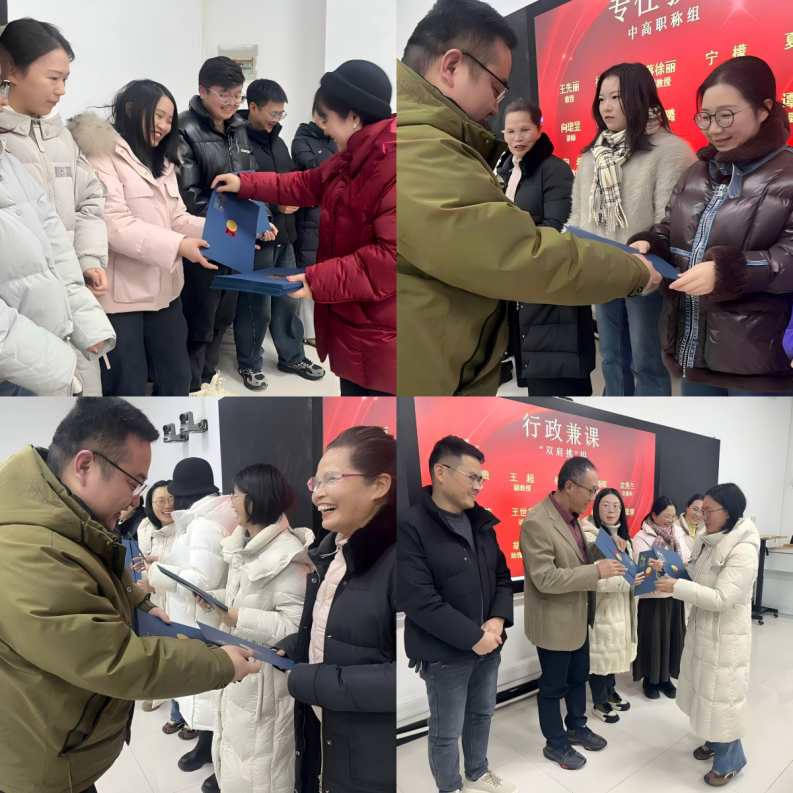 随后,颁奖环节正式开始。临床医学院副院长徐杜钊和健康学院副院长胡佳共同为获奖老师颁发荣誉证书,并与他们一一握手表示祝贺。