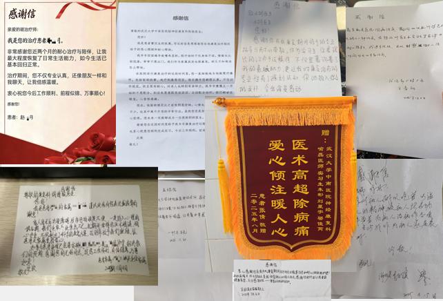 方涛、柳相如、胡婧瑶、陈驰、罗茜译、朱彬等同学收到患者赠与的感谢信及锦旗
