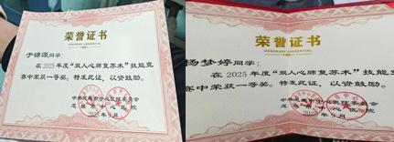 于锦源、杨梦婷同学在恩施市中心医院的技能竞赛中表现优异,分获一等奖及心肺复苏专项荣誉
