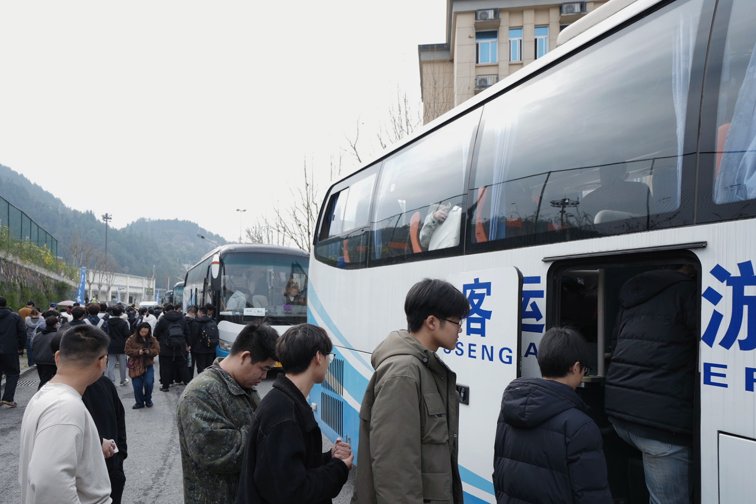 上午8时,去往秀山县人民医院、奉节县人民医院、黔江中心医院江、汉油田总医院四地的同学在医学部老师们的帮助下开始行李装车。