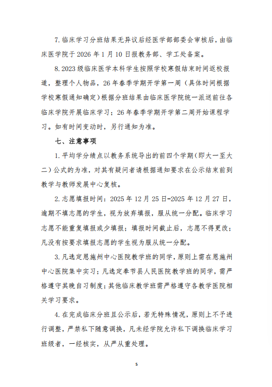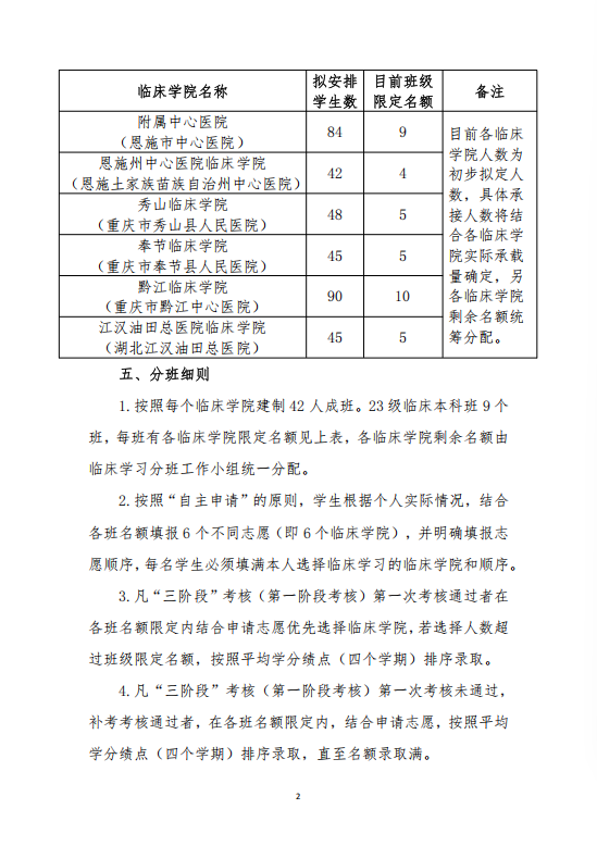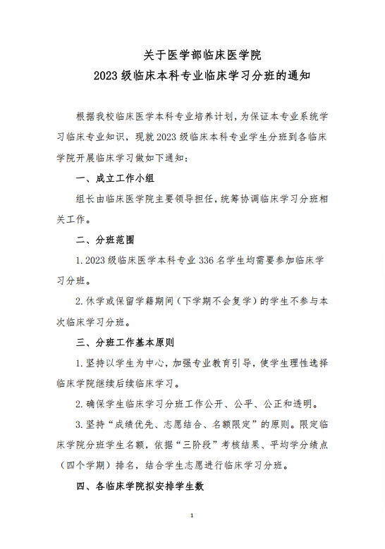 关于医学部临床医学院2023级临床本科专业临床学习分班的通知