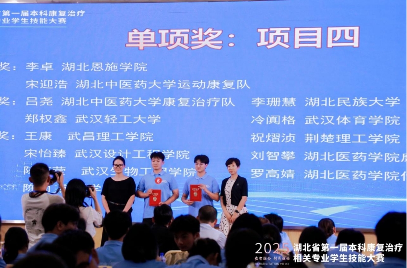 湖北省第一届本科康复治疗相关专业学生技能大赛,我校由医学康养系主任冉淦成老师带领四名学生参赛选手组队参赛,经历练习、初赛、决赛三个阶段,多轮角逐,康复治疗学专业学生李卓获得个人一等奖,谢瑞峰、吴欣怡获得个人二等奖两项,刘莹雪获得个人三等奖,并获得团体二等奖的良好成绩。