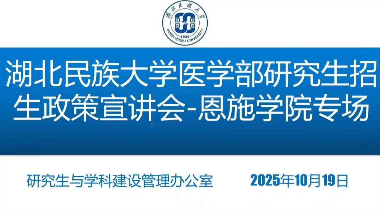 本网讯 为助力我院学子精准把握考研动态、明晰目标院校信息、科学规划升学路径,湖北恩施学院临床医学院学生发展中心于2025年10月19日19:30—21:00,以线上形式举办“携手民大•研途引航—2026年考研联合宣讲会”。活动特邀湖北民族大学医学部党委副书记、研究生与学科建设管理办公室负责人等嘉宾莅临,为我院学子们带来一场权威、全面的考研资讯分享盛宴。当前考研竞争日趋激烈,获取精准前沿的招生信息是备考关键。本次宣讲会...