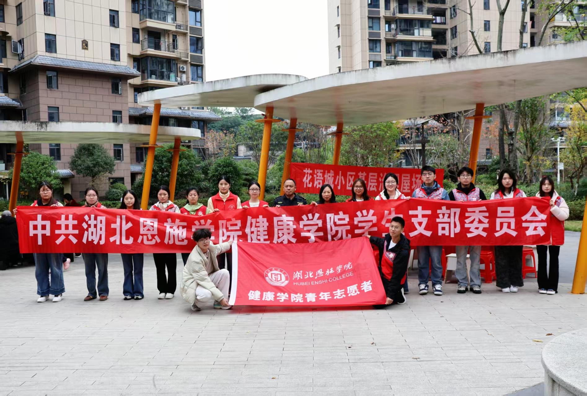 本网讯 为切实满足居民健康生活需求普及科学健康知识,传递社会关怀,湖北恩施学院健康学院团总支社工部20余学子于2025年11月14在花语城小区成功开展“爱心义诊,情暖人间”主题公益活动。活动聚焦居民常见健康需求,开设量血压、测血糖、艾灸理疗等核心服务项目,以专业、便捷的医疗服务,为百余位辖区居民送上“家门口的健康福利”。活动当天清晨,健康学院的志愿者们早早抵达现场,有条不紊地搭建服务专区、摆放医疗设备、悬...
