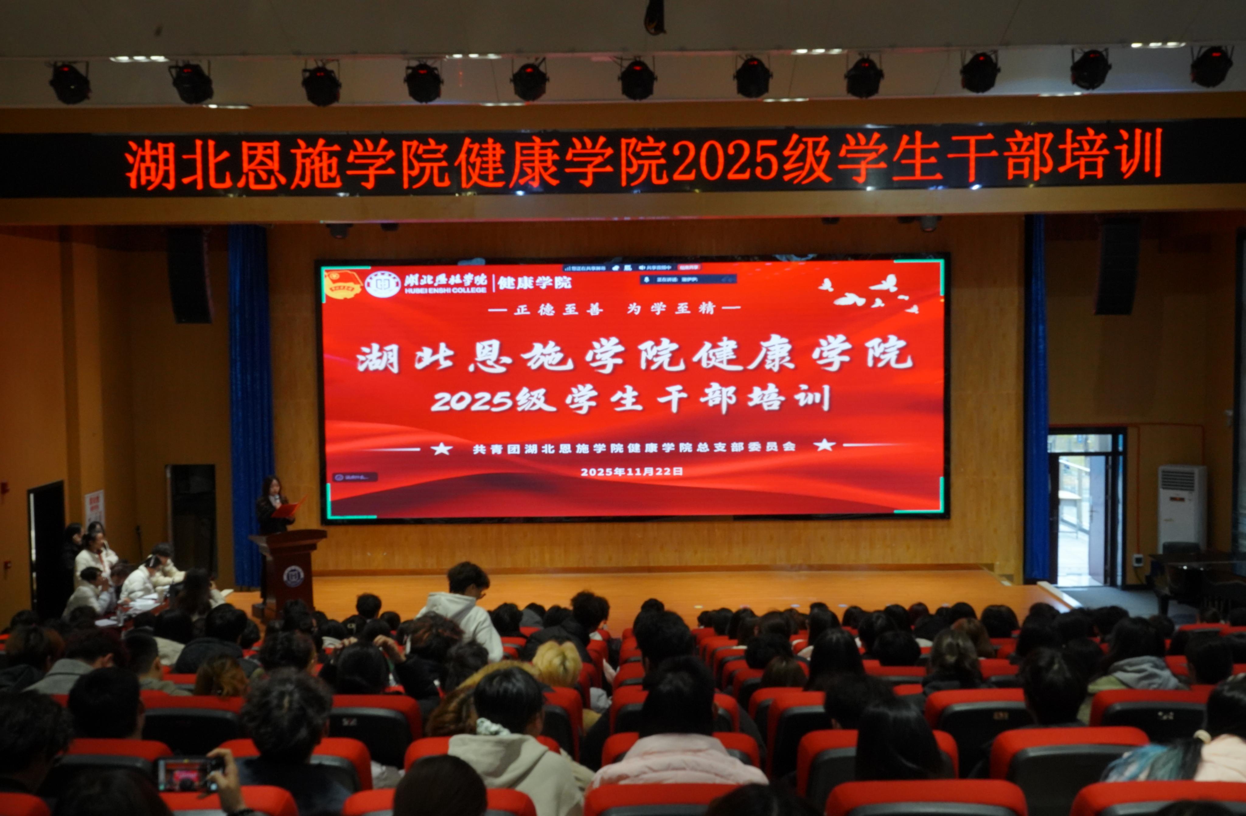 本网讯 为深入贯彻共青团改革要求,提升学生干部综合素质与履职能力,11月22日,湖北恩施学院健康学院2025级学生干部培训(第五期)在图书馆学术报告厅顺利开展。本次培训聚焦思想引领、能力提升与作风建设,来自2025级团总支、学生会、公寓管理委员会、青年传媒中心的骨干成员及兼任班级委员的学生干部齐聚一堂,以饱满的热情投入这场“能力充电”之旅。上午8:30,培训开班仪式在庄严的团歌声中拉开帷幕。健康学院学生发展中心...