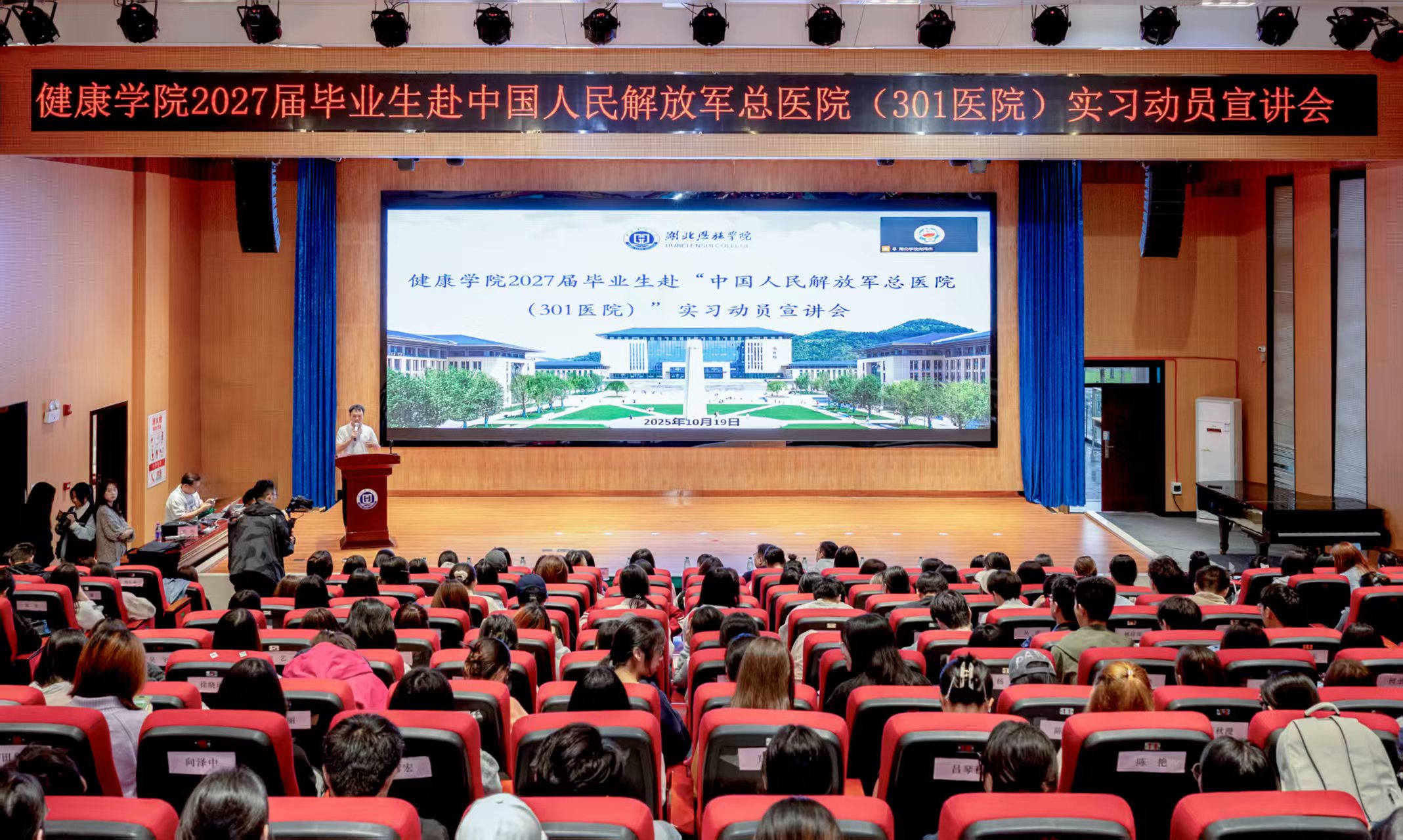 本网讯 为深入贯彻“以学生为中心”的育人理念,助力学生实现职业梦想、提升学习成效与就业质量,湖北恩施学院健康学院于2025年10月19日在学术报告厅隆重召开2027届护理学毕业生实习动员宣讲会,围绕学生赴中国人民解放军总医院(301医院)开展实习进行动员部署。会议旨在引导学生明确实习目标、激发学习热情,为步入临床实践阶段做好充分准备。健康学院领导、教师代表以及2027届护理本科及专升本毕业生共同参会。医学部实践教...