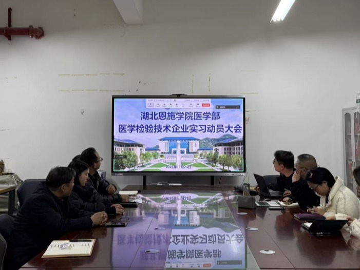 为深化产教融合、校企协同育人机制,推进医学检验技术专业实习改革,助力学生高质量实习与就业,湖北恩施学院医学部于11月24日召开“医学检验技术企业实习动员大会”。本次会议邀请了中软国际李杰院长,健康学院邓启辉院长,实践教学中心李从德主任,健康学院学生发展中心孙紫薇主任、医学技术系谭远斌主任及全体医学检验技术订单班同学及班主任,本次会议由医学部实践教学中心实习主管邓博杰主持。李杰院长开展实习基地专题讲...